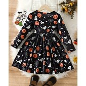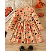 More information about Halloween Girls' 3D Graphic Halloween pumpkin Dress Long Sleeve Spring Fall Daily Holiday Vacation Princess Beautiful Sweet Kids 4-12 Years Casual Dress A Line Dress Knee-length Polyester Regular Fit