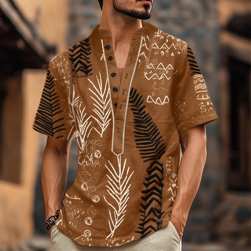 Why Choose Men's Geometric Ethnic T Shirt Henley Shirt Tee Short Sleeve Designer Basic Bohemian Outdoor Casual Daily Summer Olive Brown Dark Brown Brown Khaki Henley Henley T-Shirt?