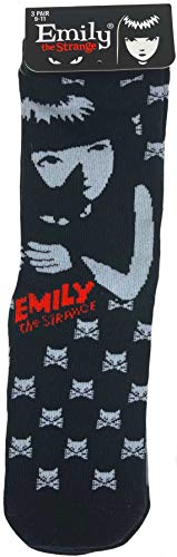 Emily the Strange Women's Cute Fun Edgy Black Cat Skull Crew Socks - 3 Pair 5