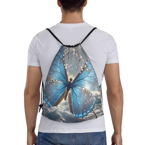 Drawstring Backpack Sports Gym Bags Draw String Bag for Women Men blue butterfly Drawstring Bags Sackpack 1