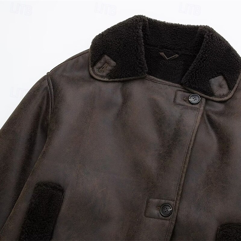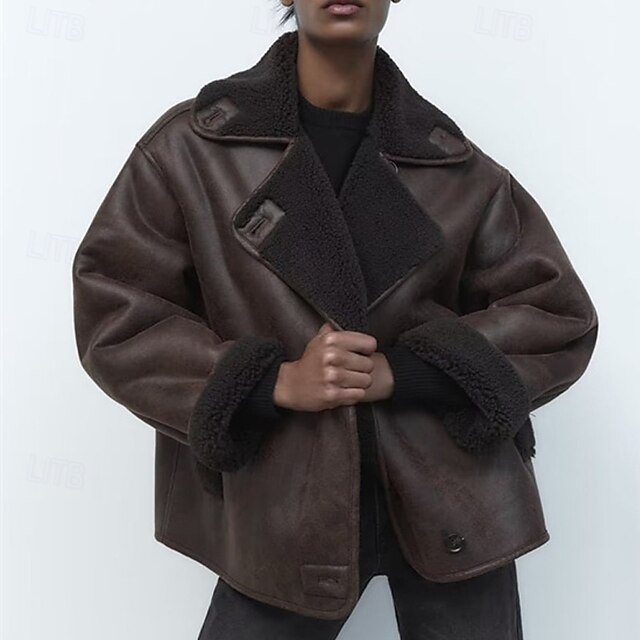 More information about Women's Fleece Jacket Casual Jacket Suede Vest Windproof Warm Pocket Fashion Modern Casual Solid Color Going out Weekend Single Breasted Regular Lapel Regular Fit Long Sleeve Outerwear Brown Beige