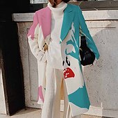 More information about Women's Winter Coat Warm Breathable Street Vacation Going out Print Open Front Turndown OL Style Elegant Modern Abstract Regular Fit Outerwear Long Sleeve Winter Fall Green S M L XL XXL 3XL