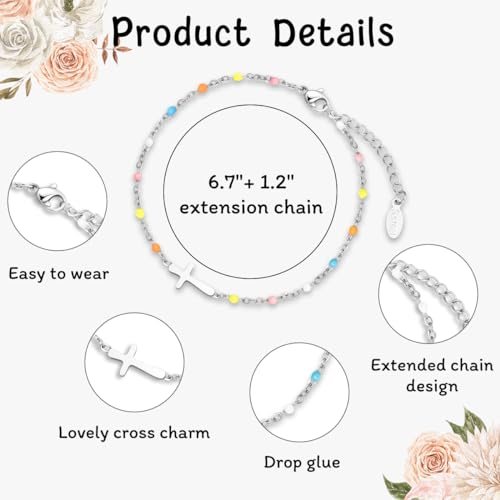Cross Bracelet for Girls, Easter Basket Stuffers for Teens Girls Baptism Confirmation First Communion Christian Easter Jewelry Gifts 6