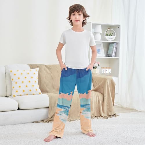 HOT ! Boys' Pants Oil Painting Beach Coconut Tree Long Bottoms Jogger Pants Elastic Waist Trousers with Pockets S-XL