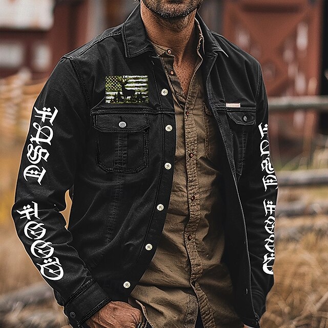 Men's American US Flag Patriotic Work Shirt Western Shirt Cargo Shirt Long Sleeve Vintage Casual Tactical Sports & Outdoor Going out Winter Spring &  Fall Turndown Print Black 1