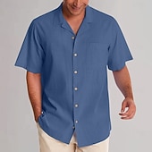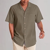 More information about Men's Casual Shirt Plain Vacation Black Dark Navy Green Khaki Short Sleeve Lapel Summer Clothing Apparel
