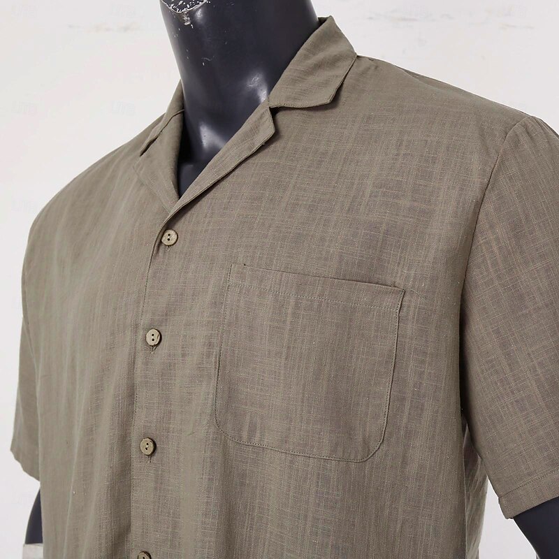 Men's Casual Shirt Plain Vacation Black Dark Navy Green Khaki Short Sleeve Lapel Summer Clothing Apparel 6