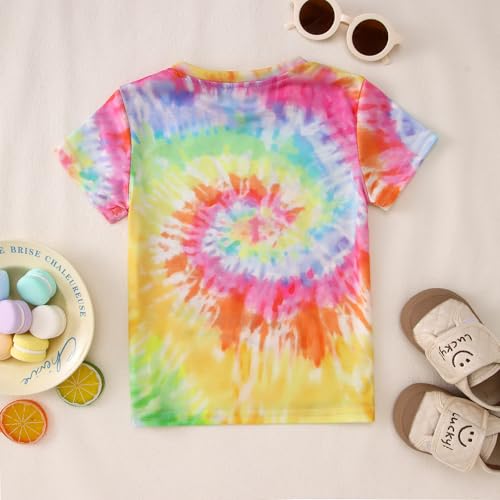 • 【Material】This toddler kid girls tie dye shirt is made of a cotton-blend fabric. The toddler tie dye t-shirt is ultra-soft, breathable, and gentle on sensitive toddler skin. The lightweight material ensures all-day comfort, is easy to wash, and durable; it's a practical choice for busy parents.