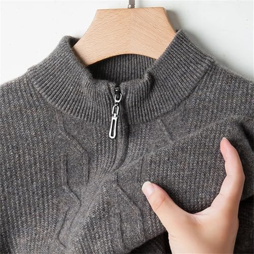 Men's Half-High Zipper Stand Collar Sweater Casual Long Sleeve Twisted Knitted Pullover Top 7