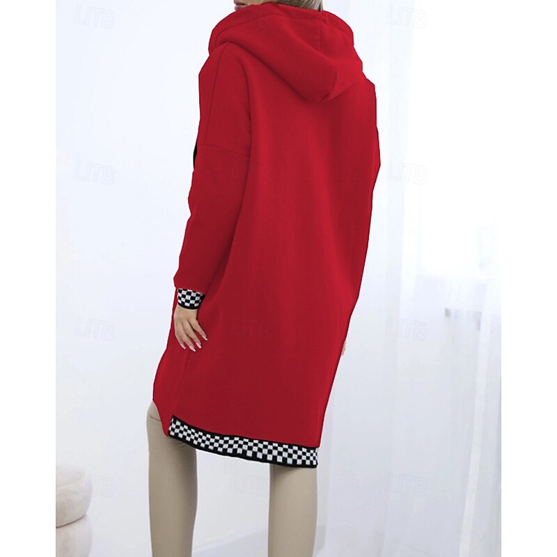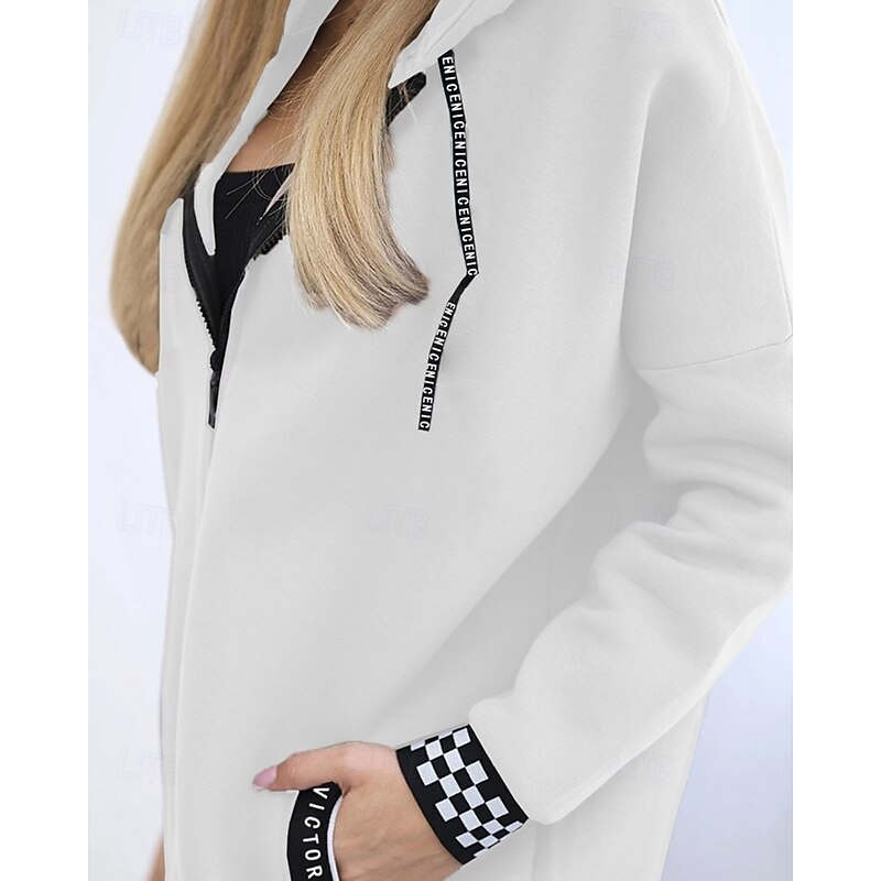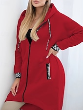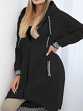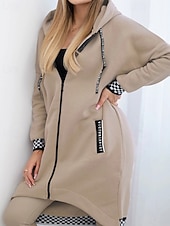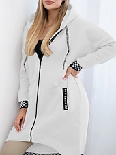 More information about Women's Trench Coat Hoodie Jacket Warm Comfortable Zipper Pocket Irregular Hem Casual Plaid Vacation Going out Weekend Long Hooded Loose Fit Long Sleeve Outerwear Black White Pink Fall Winter