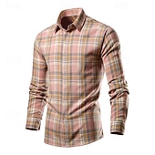 Men's Shirt Dress Shirt Button Up Shirt Plaid Wedding Party Yellow Red Blue Brown Long Sleeve Lapel Spring & Fall Clothing Apparel
