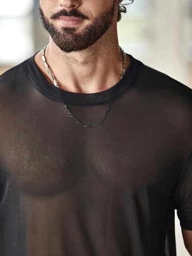 More information about OYOANGLE Men's Sheer Mesh Short Sleeve Round Neck T Shirts Solid Plain See Through Party Tops
