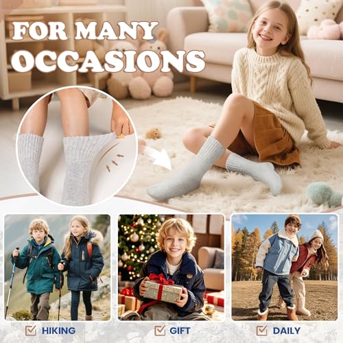 • The Perfect Present for Young Adventurers: If you’re searching for a thoughtful and practical present for a child who loves exploring, look no further! our kids winter socks are suitable as birthday, Christmas gifts, stocking stuffers, and various holiday presents for your child. These merino wool socks make a thoughtful and practical gift for children during any festive occasion.
