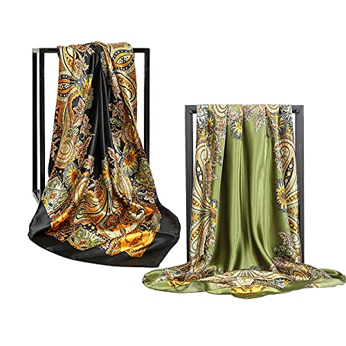 35x35 Inch Large Square Scarf 2PCS Fashion Scarves Silk Feeling Hair Scarf Wrapping Scarfs Night Sleeping Headscarf 2
