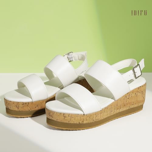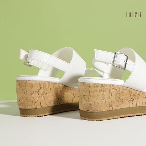 IDIFU Wedge Sandals for Women Slingback Elastic Strap with Adjustable Metal Buckle Comfortable Summer Platform Sandal Shoes 1