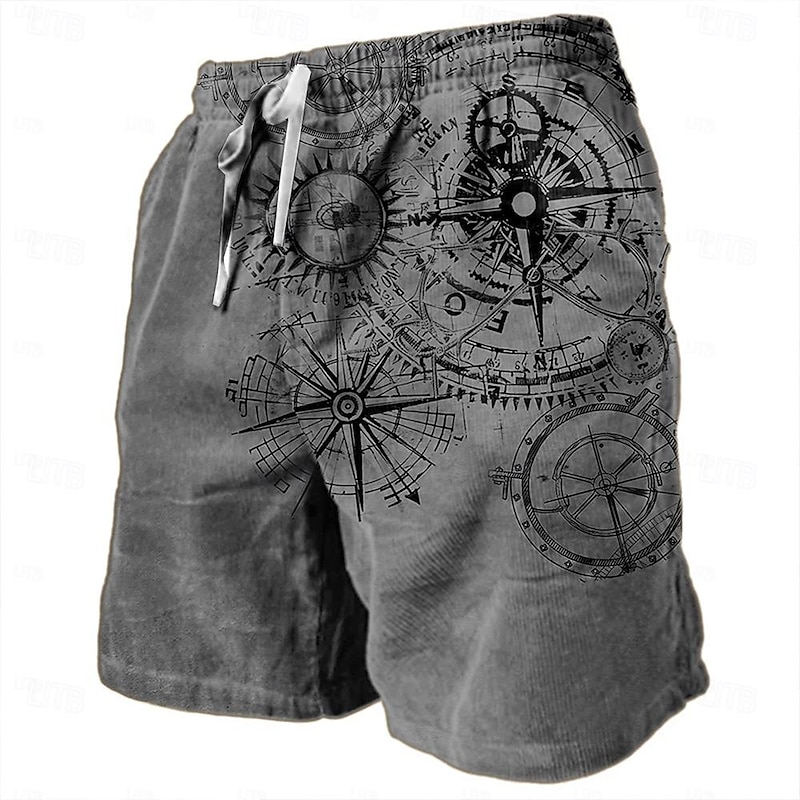 More information about Men's Nautical Graphic Prints Compass Sweat Shorts Beach Shorts Terry Shorts Mid Waist Retro Vintage Casual Daily Holiday Streetwear Drawstring Elastic Waist 3D Print Designer Clothing Apparel