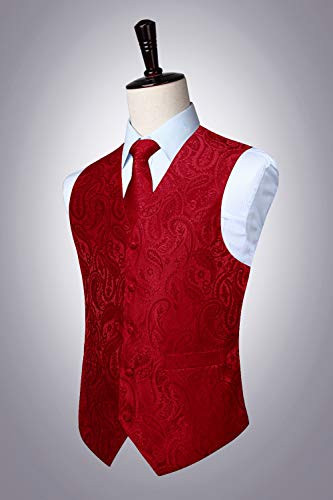 HISDERN Men's Vest Tie Set Paisley Floral Jacquard Necktie Pocket Square 3PCS Waistcoat for Suit or Tuxedo Wedding Party 4