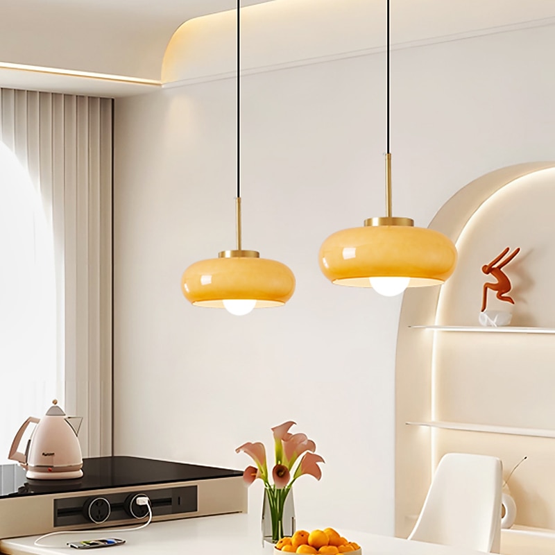 LED Pendant Light Glass Copper 28cm Unique Chandelier for Dining Room Bedroom Cord Adjustable 1