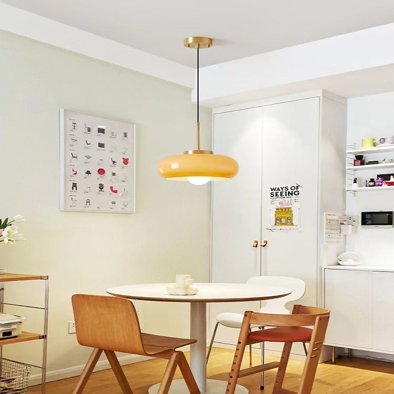 LED Pendant Light Glass Copper 28cm Unique Chandelier for Dining Room Bedroom Cord Adjustable 16