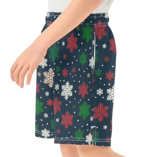 HOT ! Colorful Snowflakes Athletic Shorts with Zipper Pockets, Youth Boys Athletic Running Shorts for Summer