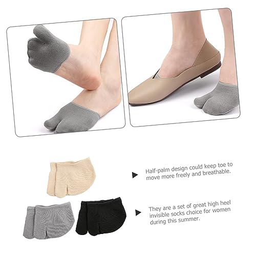 3 Pairs Comfortable Invisible Half Socks for Women of Heelless Forefoot Socks in Light Khaki Gray and Black Sweat Absorbing Tabi Design for Casual Summer Wear 7