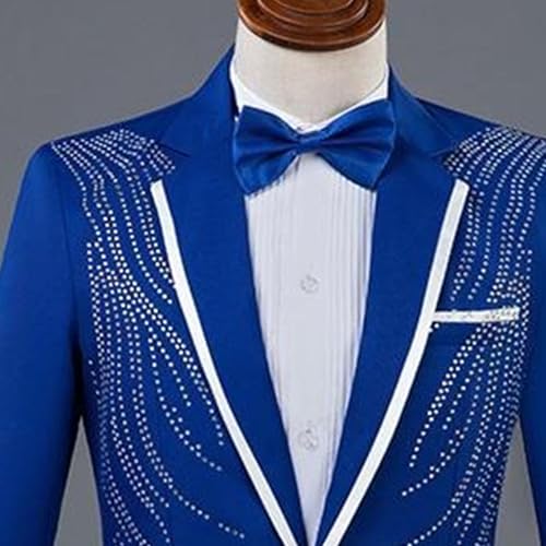 HOT ! Men's Stylish Tux Dress 2 Pieces Suit Slim Tuxedo Blazers Pants Outfit with Rhinestone for Prom,Party,Wedding