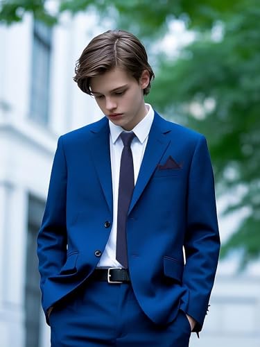 Mantieqingway Boys Tie Sets Solid Color Neckties for Boy Kids Self Ties with Pocket Square Formal Wedding Church Graduation 6