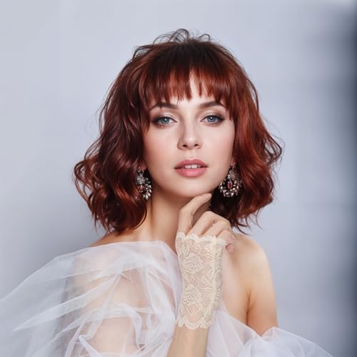 HOT ! Lace Gloves Fingerless, Short Floral Lace Gloves Women Tea Party, Fingerless Glove for Women Bridal Prom Wedding Party Costume Accessories(Beige)