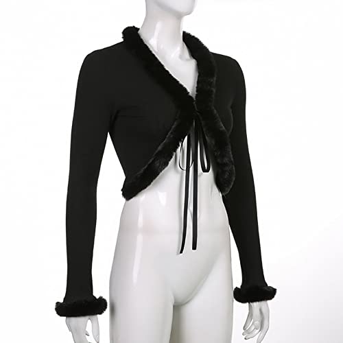 More information about Women's Sexy Feather Trim Blouse Tops Long Sleeve Tie-up Cardigan Faux Fur Crop Top Rave Festival Outfits