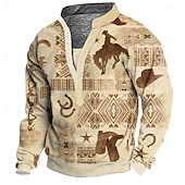 More information about Men's Tribal Sweatshirt Ethnic 3D High Neck Gift Travel Streetwear Khaki Dark Blue Button Front Fall Winter Designer