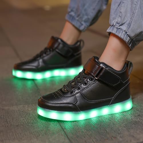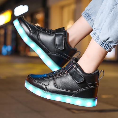 Kids LED Light up Shoes USB Rechargeable High Top Sneakers for Unisex Child Boys Girls 7