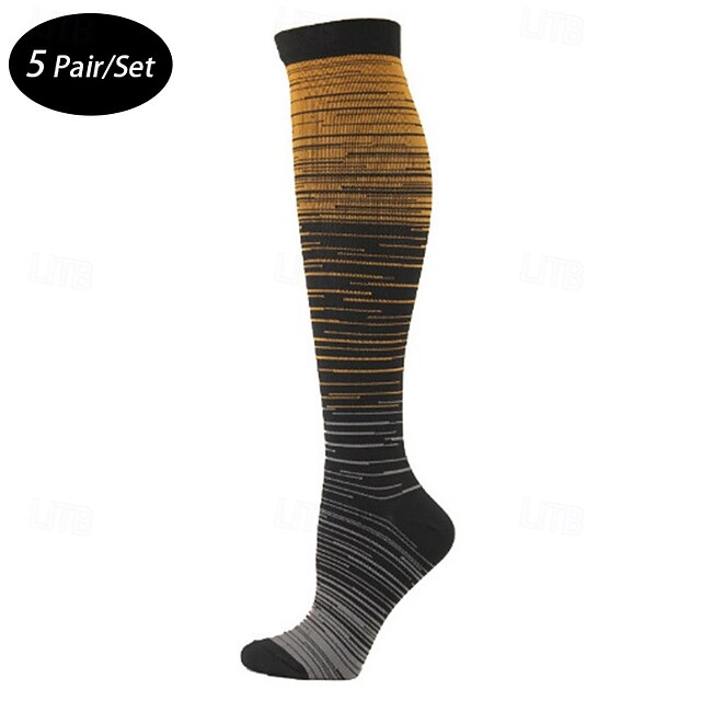5 Pairs Men's Compression Socks Hiking Socks Sports Socks Breathable Soft Stretchy Comfortable Outdoor Patchwork Chinlon Dark Grey Yellow Blue for Hunting Cycling / Bike Camping / Hiking / Caving 5