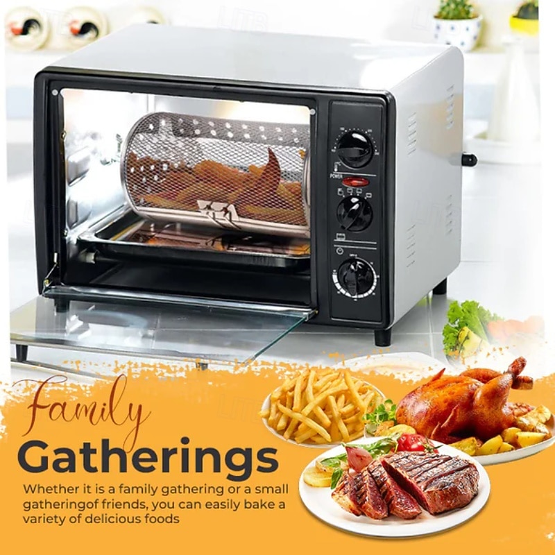 Stainless Steel Rotating Grill, 360-Degree Rotisserie for Even Cooking, Multifunctional Oven and Air Fryer Compatible, Easy to Clean BBQ and Party Essential 12