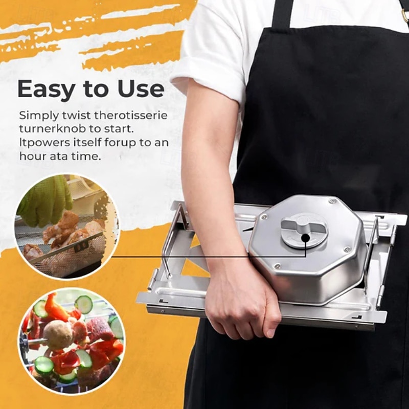 Stainless Steel Rotating Grill, 360-Degree Rotisserie for Even Cooking, Multifunctional Oven and Air Fryer Compatible, Easy to Clean BBQ and Party Essential 14
