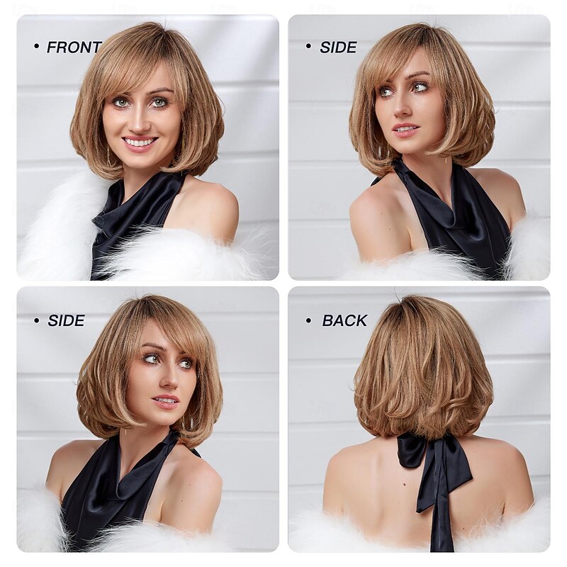 More information about Human Hair Blend Wig Short Natural Straight Pixie Cut Side Part Layered Haircut Asymmetrical Brown Cosplay Curler & straightener Natural Hairline Capless Brazilian Hair Women's All Medium Brown 12