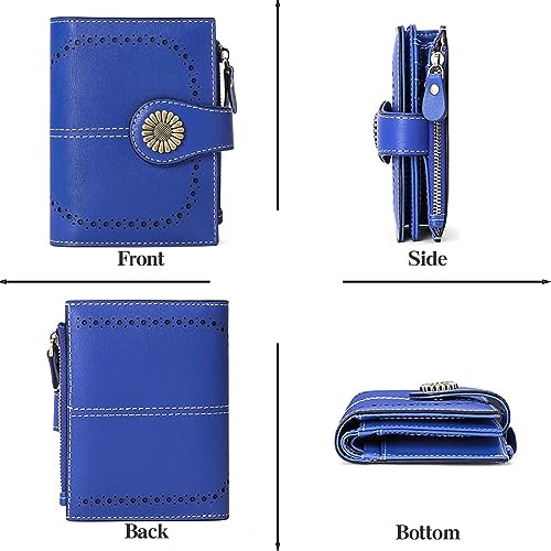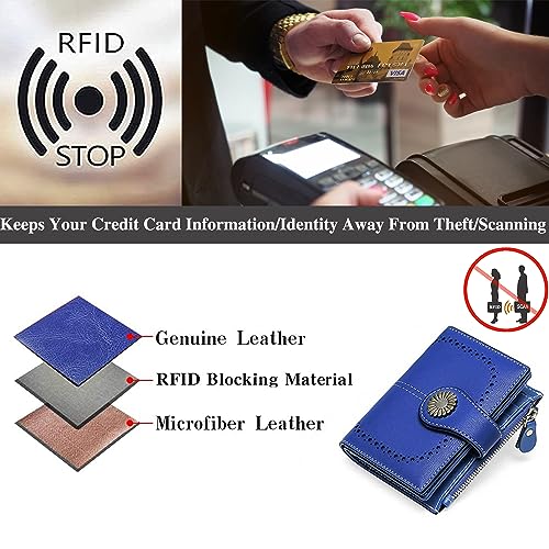 HOT ! Custom Small Wallet,Engraved Name Wallets with RFID Blocking Clutch Purse Bifold Credit Card Holder with Zipper Coin Pocket for Women (Genuine Leather, Wax-Treasure Blue)