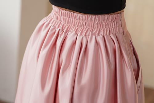 Women’s A-Line Satin Flared Maxi Skirt Long Floor Length High Waist Formal Prom Party Skirts with Pockets 5