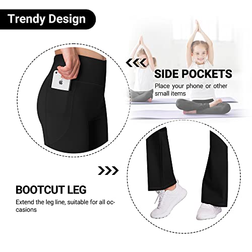 AENLLEY Girl Yoga Flare Wide Leg Tummy Control Stretchy Pants for Causal with Pockets 3 Pack 4
