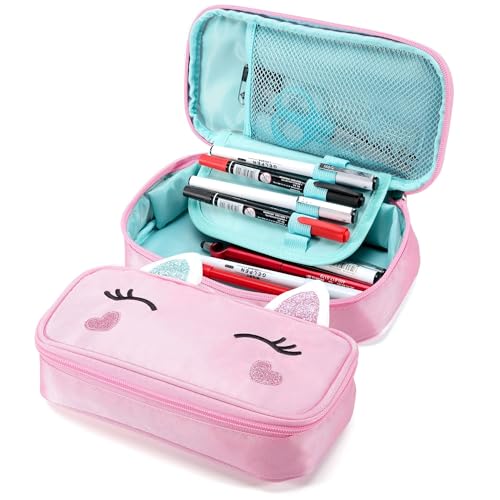 • ►Featuring double-sturdy brand zippers, this pencil case is made for holding an abundance of stationery. It's rectangular shape measures at 8.9-by-4.4-by-2 inches, which makes it perfect for holding all standard-sized pens or pencils.