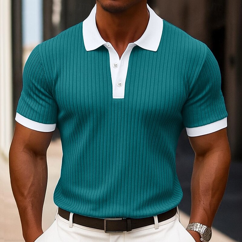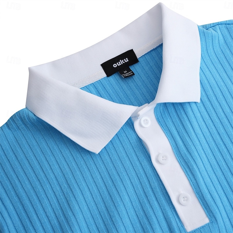 More information about Men's Muscle Shirt Golf Shirt Work Casual Ribbed Polo Collar Classic Short Sleeve Basic Modern Color Block Ribbed Summer Spring Spring & Summer Slim Fit White Blue Green Grey Muscle Shirt