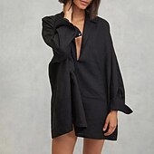 $36.99 - Women's Mini Dress Shift Dress Vacation Casual Beach Daily Holiday Date Plain Long Sleeve Notched Neck Black White 2025. Shop for cheap Plain Dress online? Buy at lightinthebox.com on sale today!