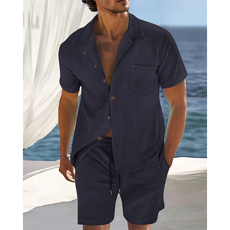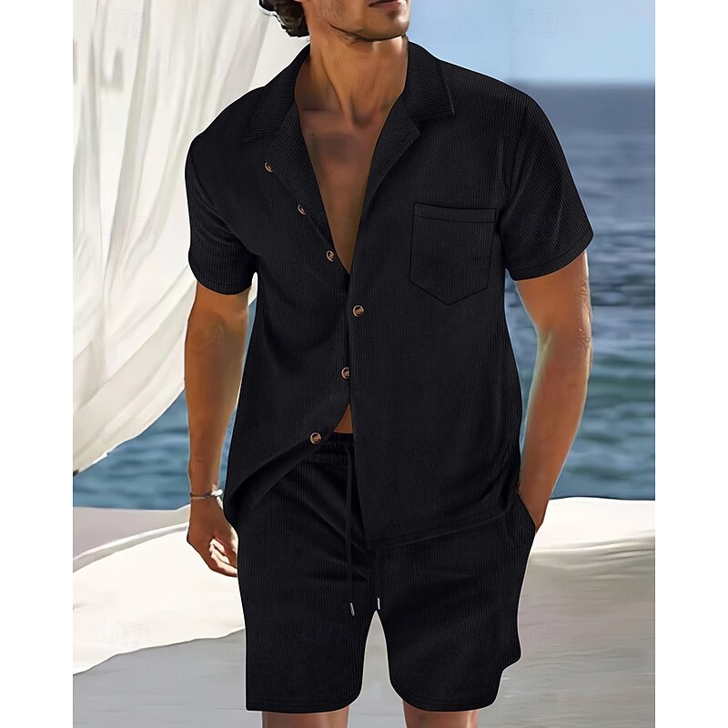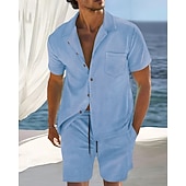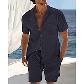 More information about Men's T-shirt Suits 2 Pieces Outfits Tee & Shorts Short Sleeve Shirt Collar Summer Plain Fashion Casual 2 Piece Vacation Daily Wear Going out Black Navy Blue Blue Top Tee for Men