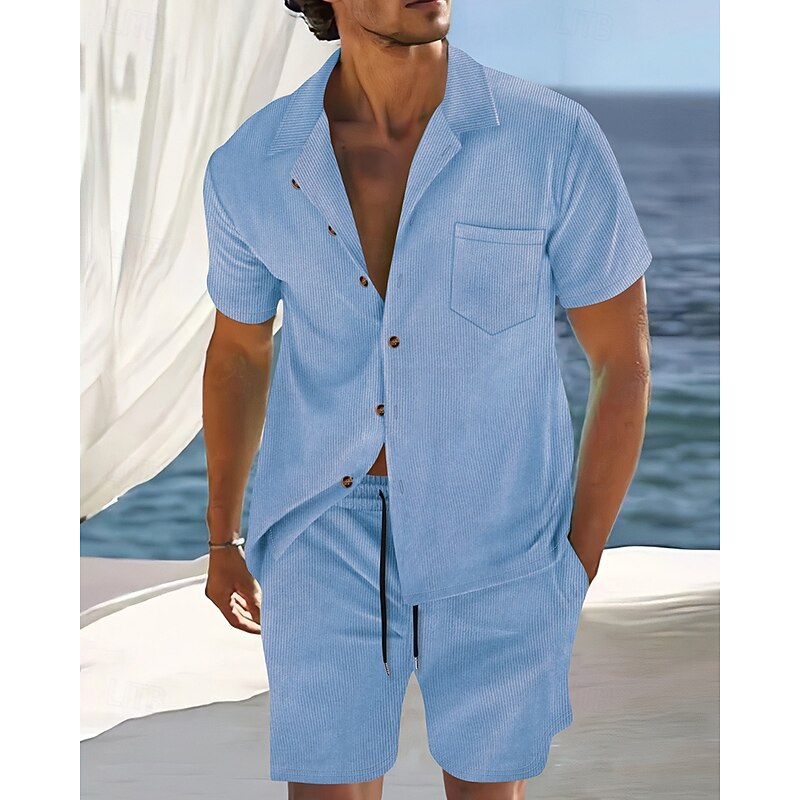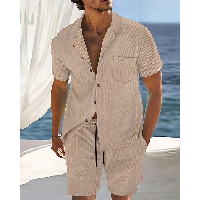Highlights - Perfect for summer vacations - Made of high-quality polyester fabric - Short sleeve design for added comfort - Casual style for a relaxed look - Includes 2 pieces outfits for easy styling - Ideal for men - Features a stylish shirt collar - Suitable for any vacation or leisure occasion