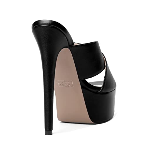 HOT ! SHOWFOREST Womens Platform Matte Party Sexy Solid Round Toe Slip On Stiletto High Heel Heeled Sandals 6 Inch