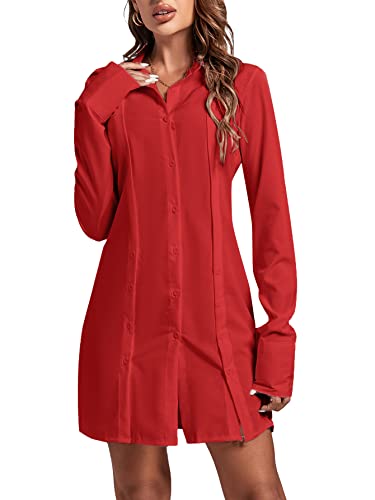 More information about LYANER Women's Lapel Collar Buttons Down Side Slit Long Sleeve Mini Shirt Dress