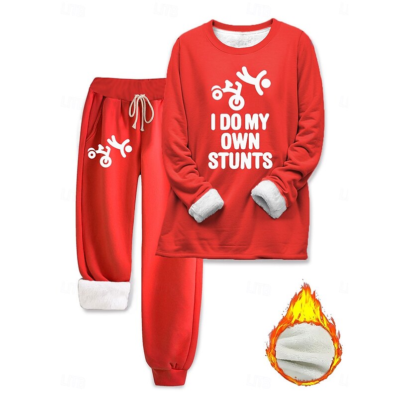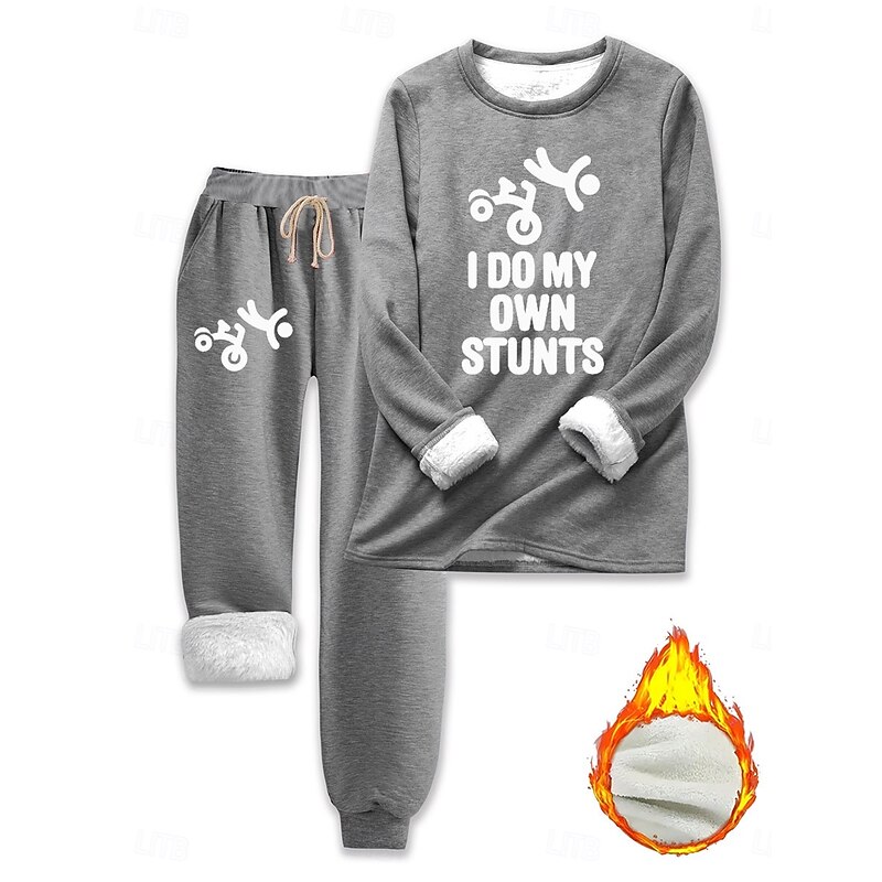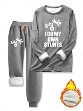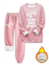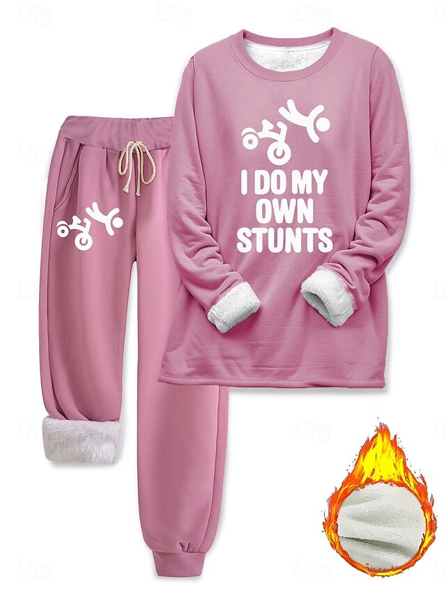 More information about Women's Elegant Warm Fashion Two Piece Sets Tracksuit Pants Sets Long Sleeve Bishop Sleeve Crew Neck Round Neck Graphic Geometric Letter Print Outdoor Vacation Daily Black Pink Dark Pink Spring