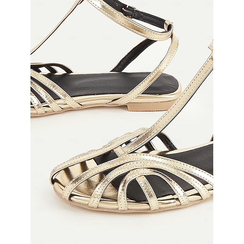 Women's Gold Strappy Flat Sandals with Ankle Strap, Elegant Summer Shoes for Weddings, Parties, and Casual Wear 9