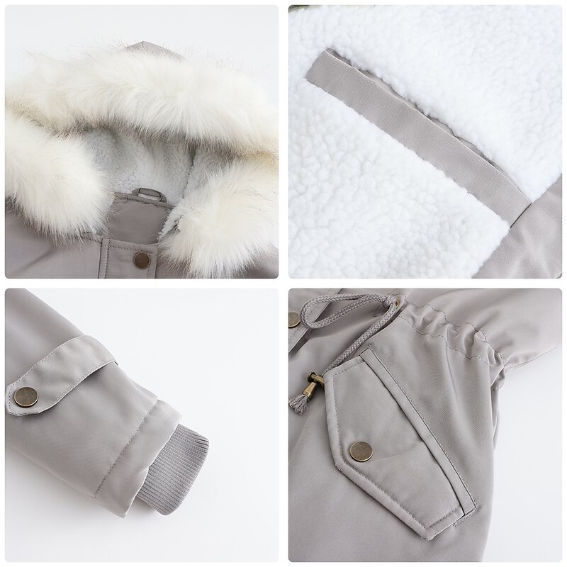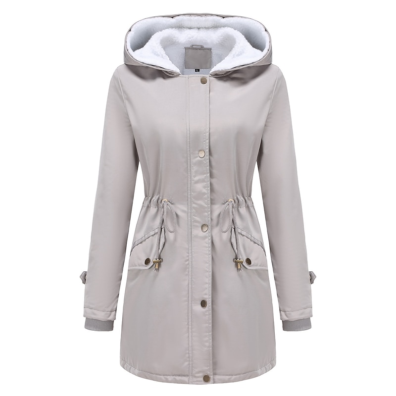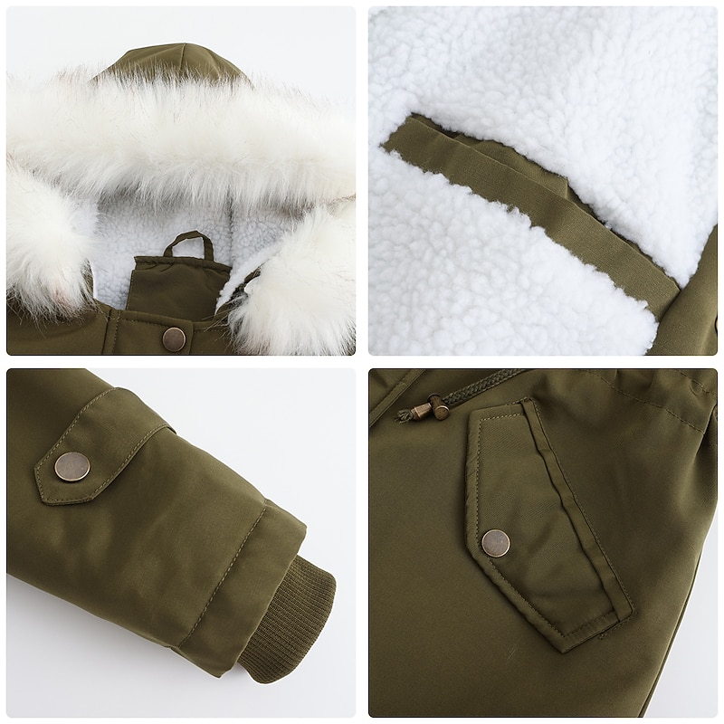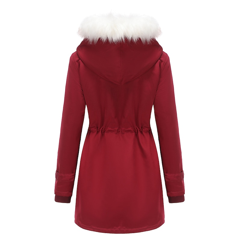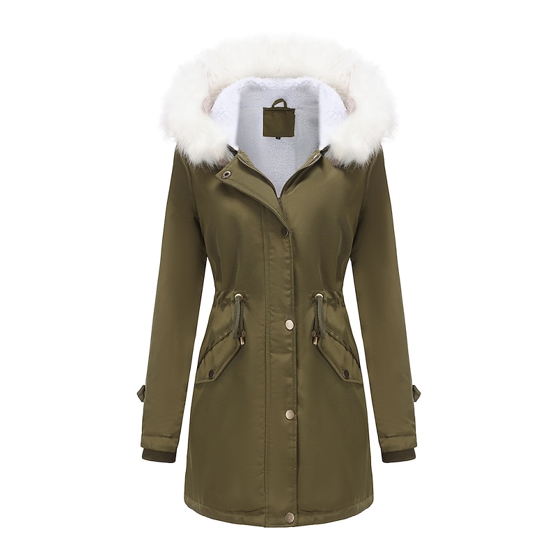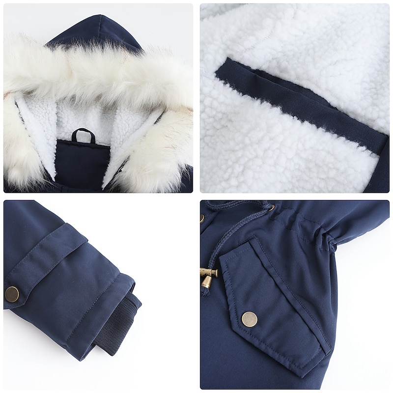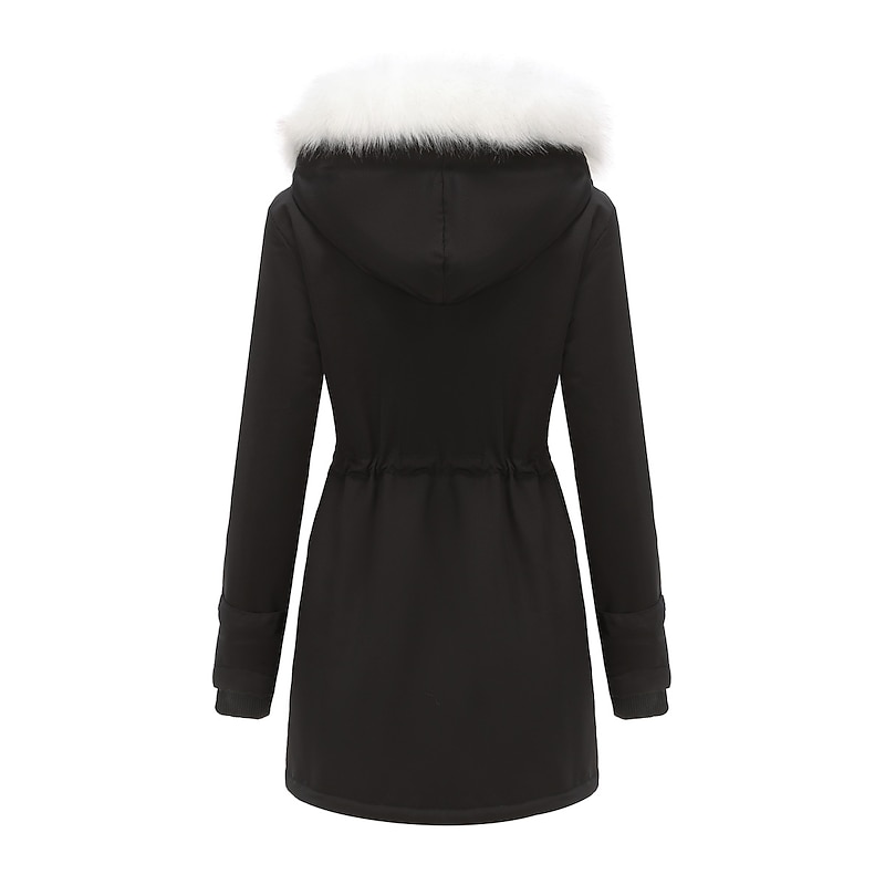 Highlights [Fabric] : Crafted from durable polyester, this women's parka jacket is designed to withstand winter elements. The polyester fabric offers windproof protection and a cozy, thermal warm fleece lining, making it ideal for brisk outdoor activities. [Fit] : This winter parka features a classic mid-thigh length that provides full coverage and comfort. The adjustable drawstrings at the waist allow wearers to achieve a more personalized and flattering fit. [Design Highlights] : The jacket boasts a chic design with a dark outer shell, perfect for harsh weather conditions. It includes a luxurious white faux fur lining around the hood, adding a touch of elegance. The parka is equipped with a concealed zipper closure, complemented by snap-button fasteners, ribbed cuffs to keep the cold out, and spacious front pockets with button closures for practicality. [Occasions] : Suitable for a variety of outdoor activities such as fishing, traveling, winter sports, camping, hiking, and caving. Whether you're on an adventurous hike or simply enjoying a chilly outdoor event, this parka provides warmth and style. [Sizes] : Available in a wide range of sizes, from S to 5XL, catering to various body types and ensuring a comfortable fit for everyone.