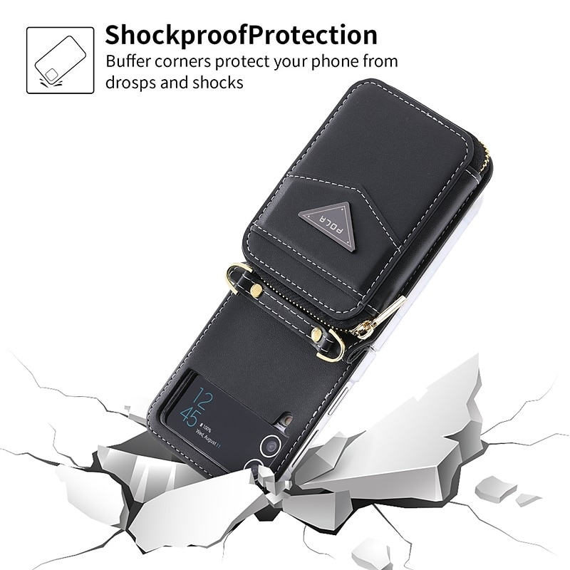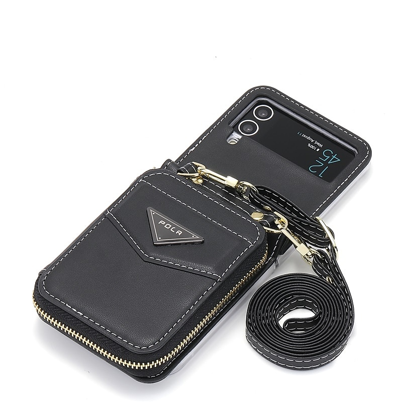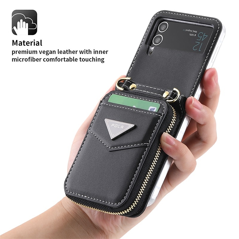 More information about Phone Case For Samsung Galaxy Z Flip 6 Z Flip 5 Z Flip 4 Z Flip 3 Wallet Case Portable Zipper Card Slot Solid Colored PC PU Leather