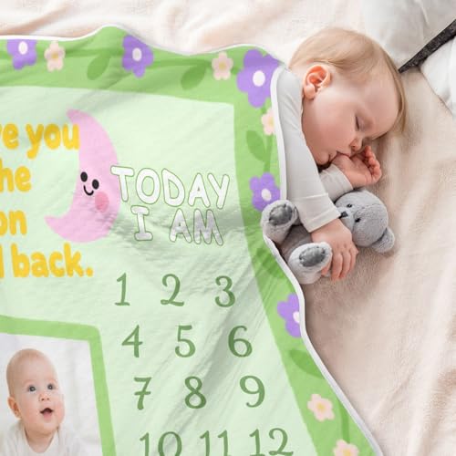 Custom Cute Baby Photo Monthly Milestone Cartoon Purple Pink Flower Toddler Blanket Soft Customizable cat Name Blanket for Girls or Boys 30x40in Regalo para 7